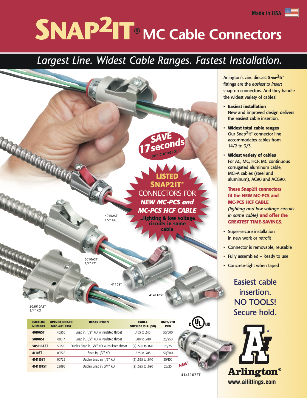 Widest total cable ranges Our Snap2It® connector line accommodates cables from 14/2 to 3/3.